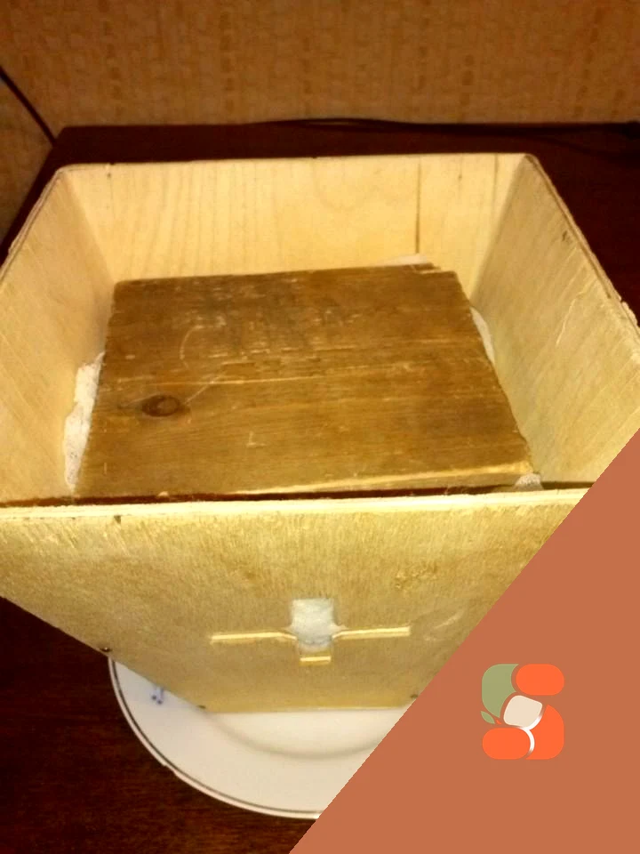: Перший етап завершуємо підвішуванням марлі з сиром для стікання (на ніч) Наступного дня у сир кладемо вершкове масло, цукровий пісок, ванілін і все ретельно перемішуємо. Родзинки додаємо в останній момент. Пасочницю вистилаємо марлею і викладаємо туди паску. Вантаж зверху класти не обов'язково, тому що вологи практично немає. Все готове, прибираємо в холодильник і чекаємо на свято.