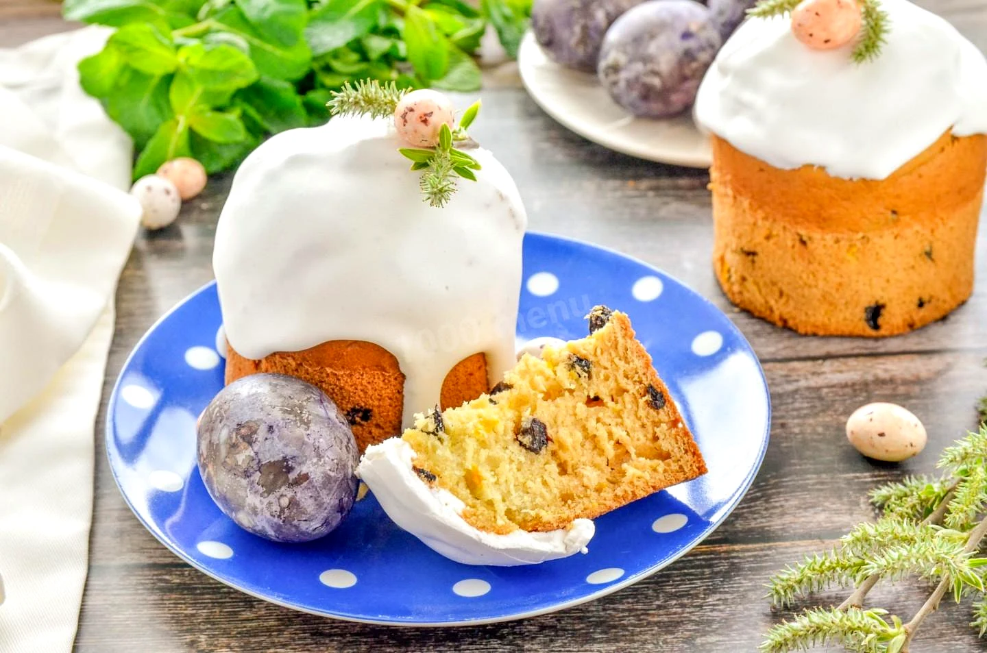 : Полностью остудите куличи и покройте глазурью. Я готовила глазурь также без яиц, ссылку смотрите ниже. Светлого праздника!