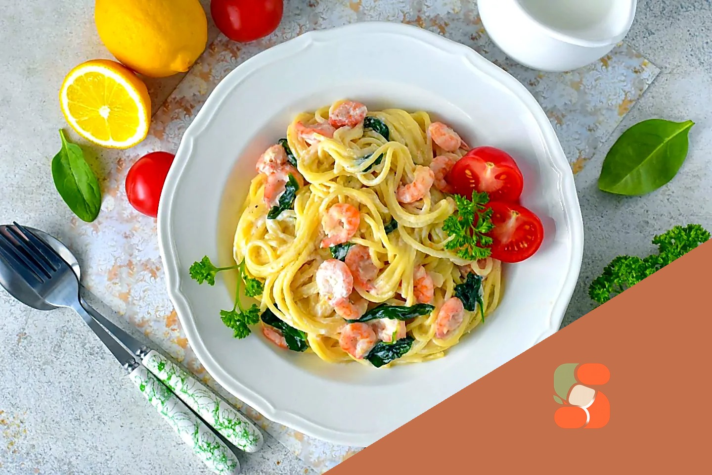 Паста з креветками та шпинатом