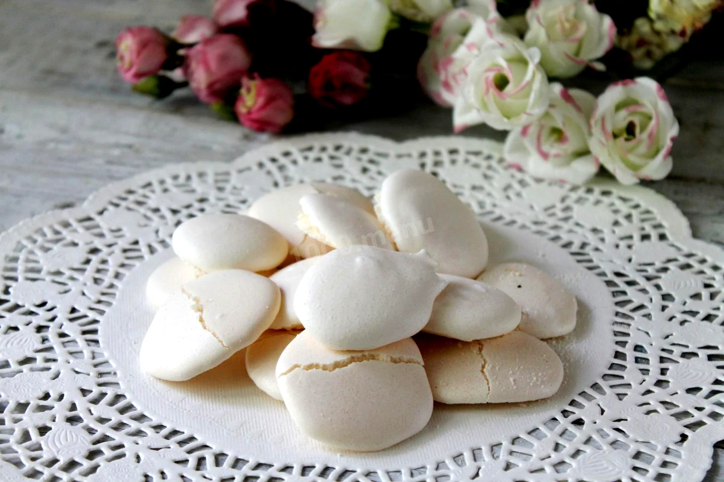 : Безе викладайте на пекарський папір і відправляйте в духовку на 2 години за температури 90 градусів. Безе меренга не запікається, а висушується. Якщо духовка не дозволяє встановити таку температуру, сушіть з прочиненими дверцятами і через годину поверніть деко зворотним боком.