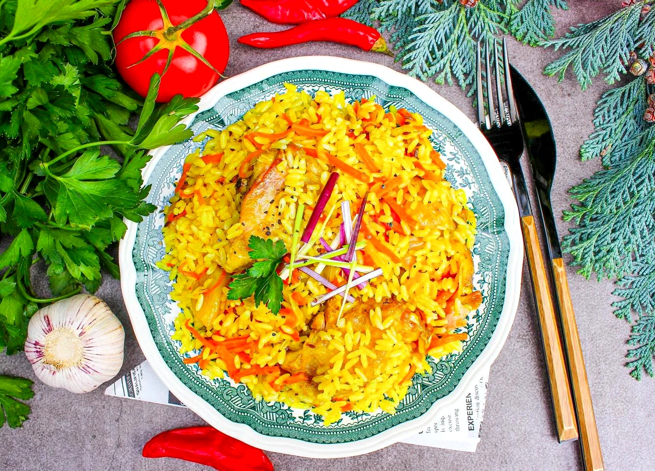 : Подавайте плов сразу же, в горячем виде со свежими овощами, салатами и различными соусами.