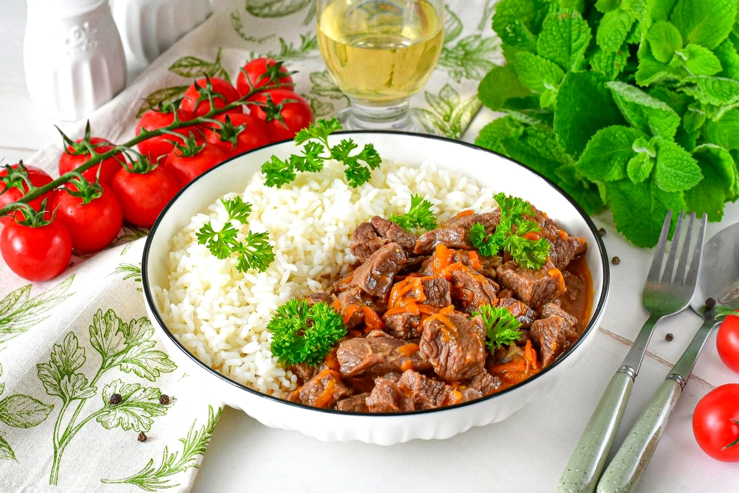 З чим подати гуляш із яловичини з підливою до столу? Подавайте гуляш до столу з будь-яким гарніром. Ідеально з картопляним пюре, гречкою, рисом чи макаронами. Приємного апетиту!