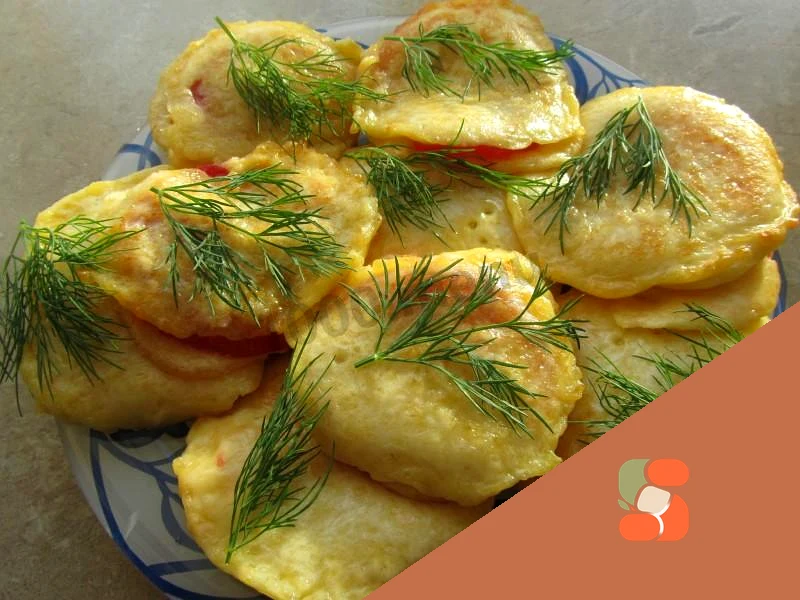 : Розігріваємо сковороду з олією і викладаємо ложкою шматочки помідори в клярі (я викладала спочатку кляр, приминала шматочком помідори, а зверху знову мазала кляром).