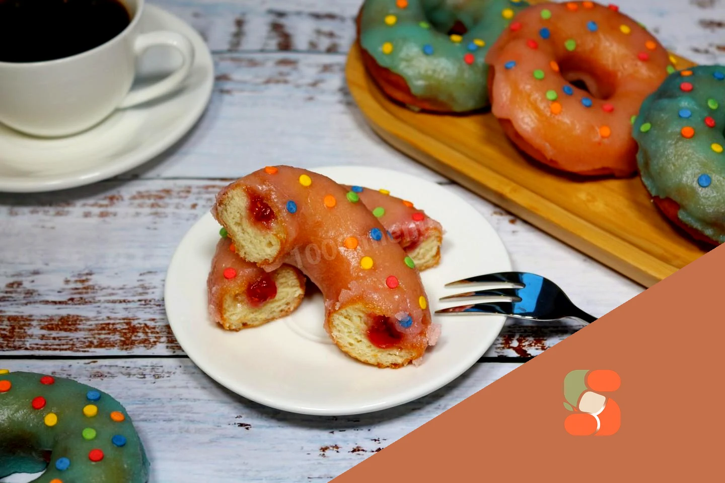 : Тепер перейдемо до процесу начинення пончиків начинкою Для цього візьмемо кондитерський мішок з насадкою, у мішок викладемо варення і, зробивши кілька надрізів у пончиках з одного боку, начинимо їх начинкою.