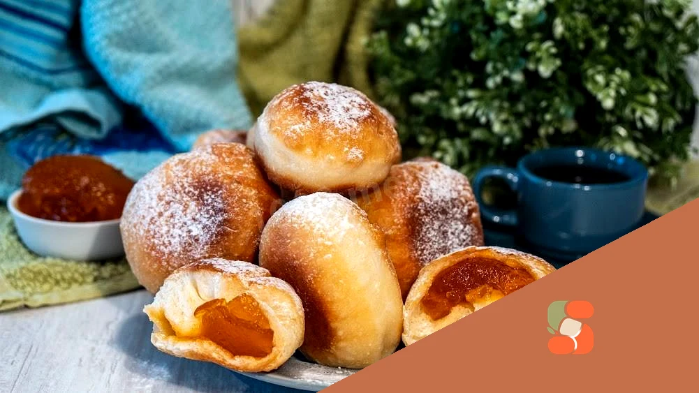 : Наші смажені на сковороді пончики з повидлом із дріжджового тіста готові Коли вони трохи охолонуть, присипте їх цукровою пудрою. Це за бажанням. Приємного Всім апетиту та чаювання!