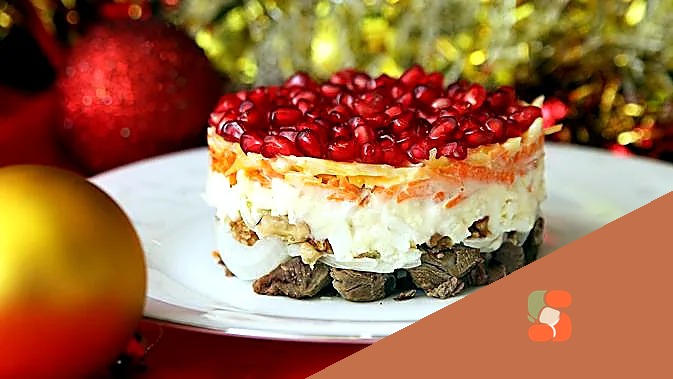 Святковий салат "Червона шапочка" з яловичиною та гранатом