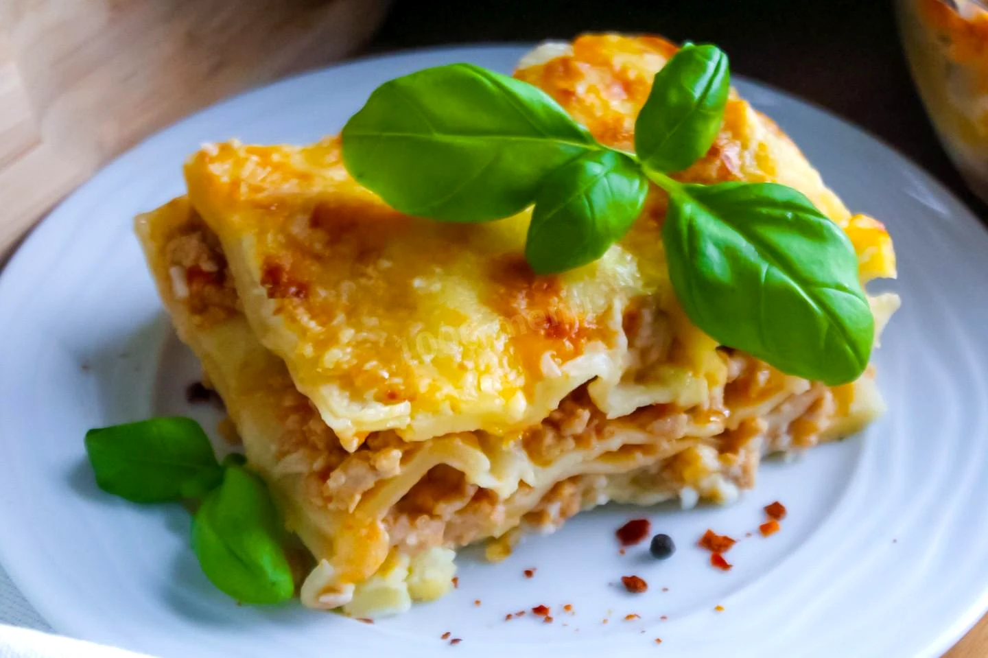 : Надішліть лазанью в розігріту до 190 градусів духовку приблизно на 30-35 хвилин. Орієнтуйтеся на те, що на лазіння має утворитися апетитна золотиста скоринка. Час приготування може відрізнятися залежно від духовки. Про особливості роботи духовок читайте у статті, посилання під рецептом. Готову страву вийміть із духовки і дайте настоятися близько 10 хвилин. Розріжте лазінням на порції і розкладіть по тарілках. Приємного апетиту!