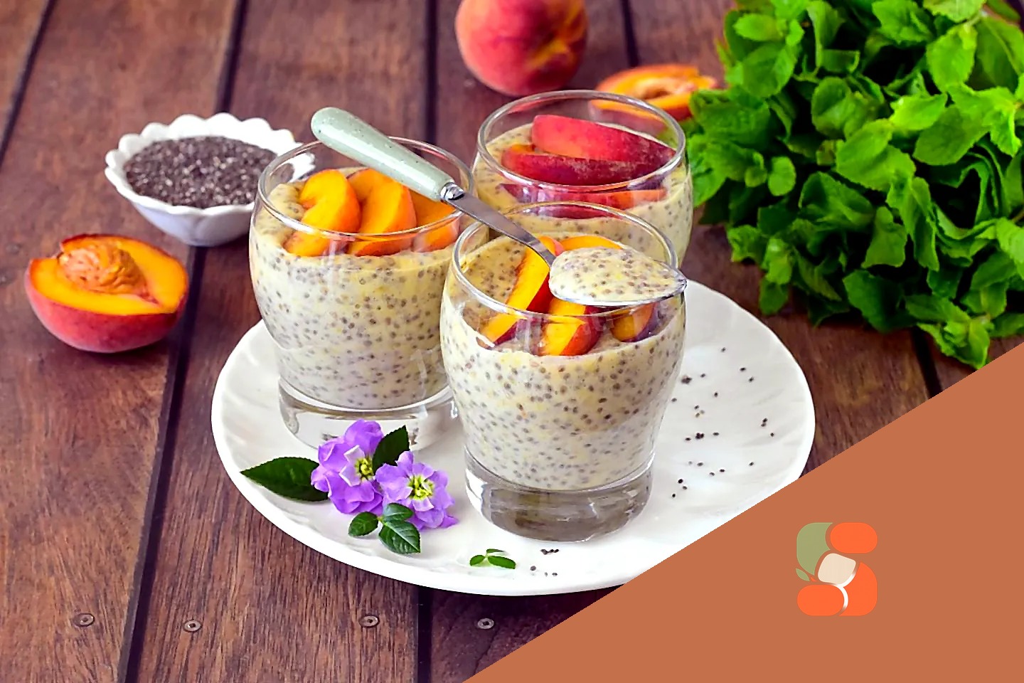 Протеїновий пудинг з кокосовим молоком, персиками та чіа
