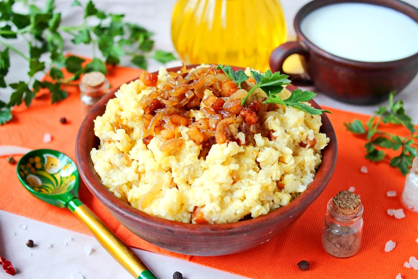 Пшоняна каша з салом