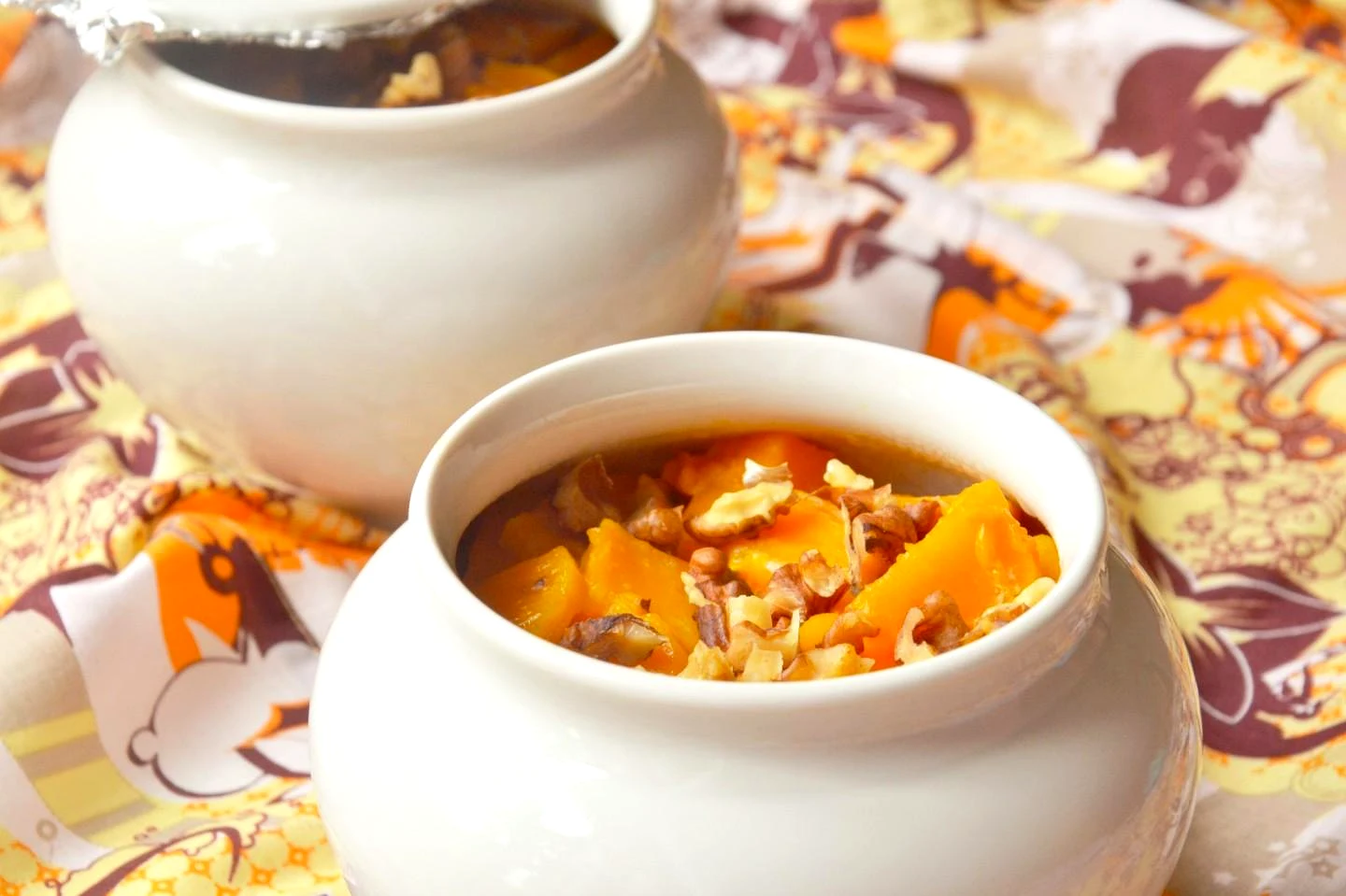 Інгредієнти−4 порції+Продукти (4 порції)Вода500 млГарбуз400 грПросо300 грВершки300 грВолоські горіхи100 грВершкове масло|мастило|100 грЦукор2 стол.л.Мед2 стол.л.Сіль0.5 чайн.л.