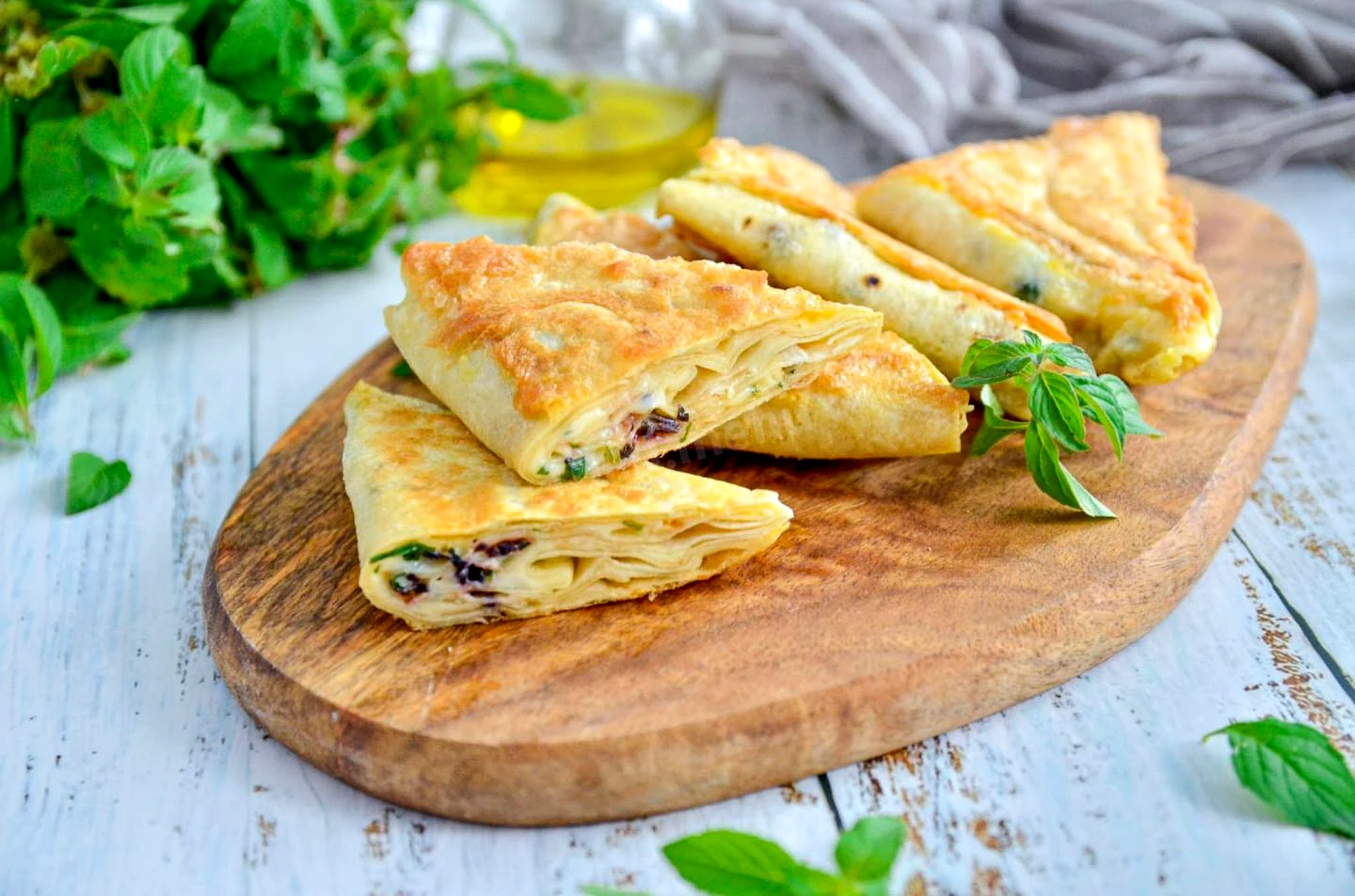 Тістечка з лаваша з яйцем і сиром на сковороді.