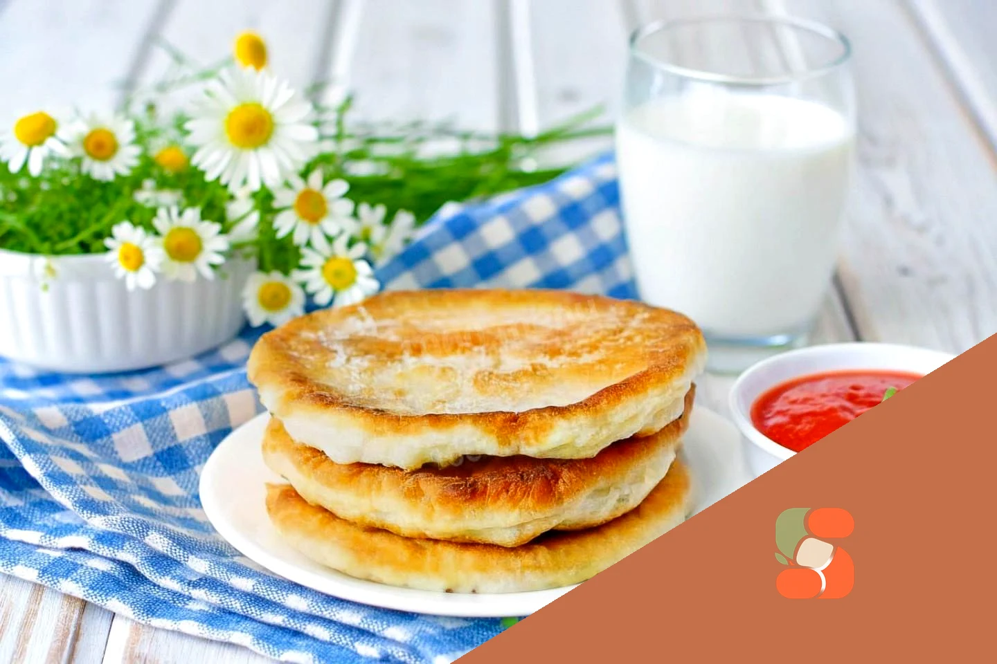 Як обсмажити коржики на сковороді? На сковороді розігрійте олію, викладіть на неї коржик і смажте на середньому вогні з одного боку протягом приблизно 5 хвилин. Тісто покриється бульбашками і добре підніметься. Я використовувала маленьку чавунну сковороду, яка якраз підійшла діаметром до моїх маленьких коржиків. Переверніть коржик на інший бік і смажте ще близько 5 хвилин. Так само приготуйте інші коржики. Вони повинні добре зарум'янитися та стати пишними.