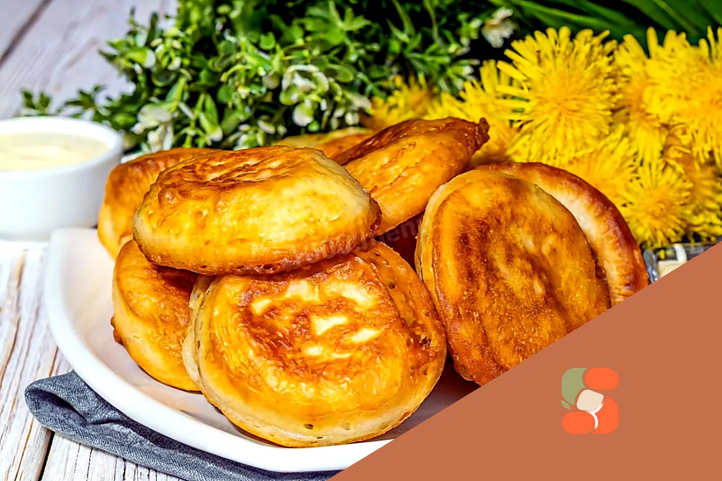 Як посмажити пишні оладки? На сковороді розігрійте олію. З вибором сковороди та олії для смаження допоможе стаття за посиланням наприкінці рецепту. Викладайте в сковороду тісто по одній столовій ложці на кожну оладку. Посмажте оладки, що сформувалися, до золотистої скоринки з кожного боку. Як зробити так, щоб оладки пропеклися всередині? Щоб оладки добре пропеклися всередині, але не підгоріли зовні, смажте їх на середньому вогні.