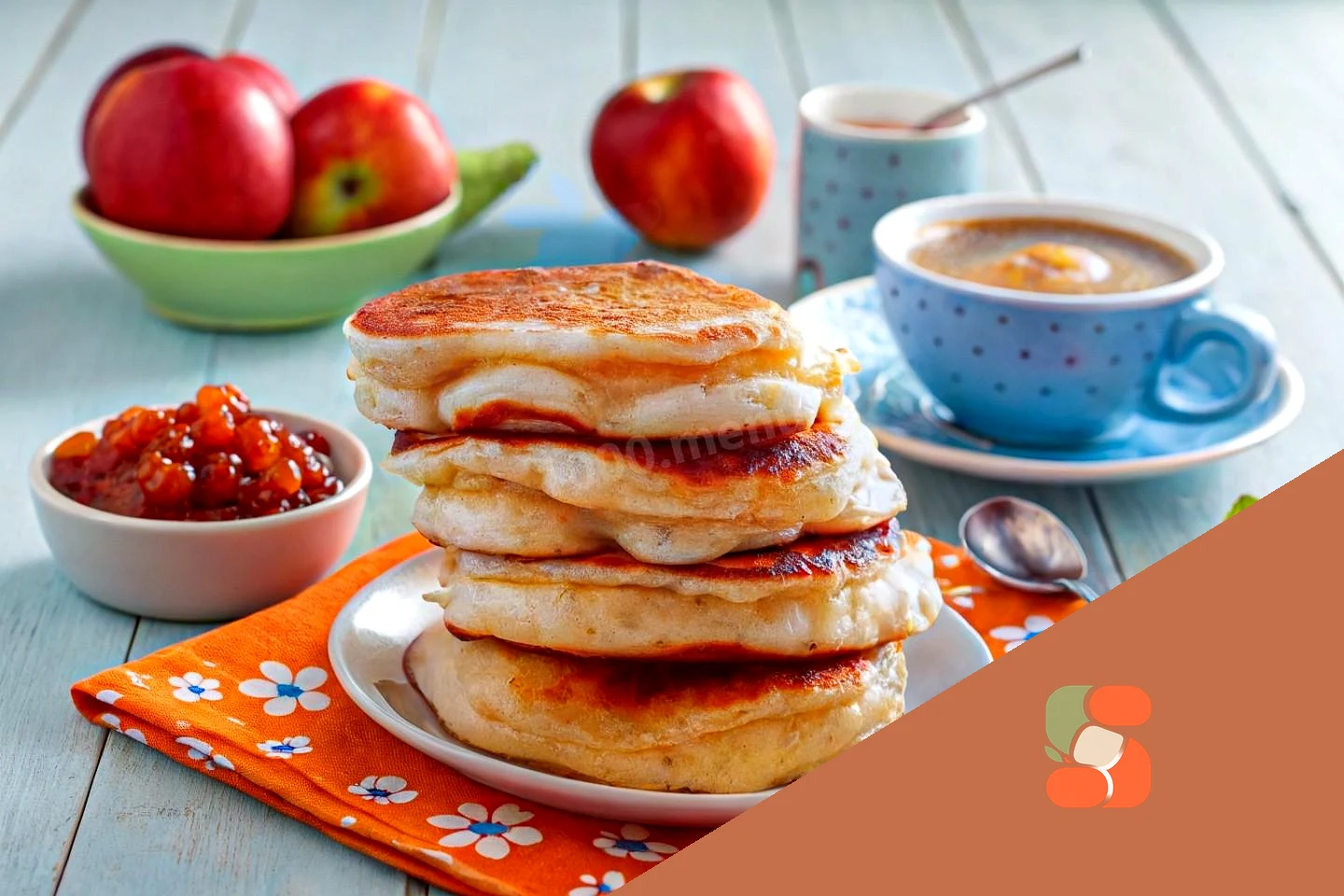 : Готові оладки з яблуками можна подавати відразу, так само вони хороші в теплому і остиглим вигляді До оладок можна запропонувати склянку молока чи чаю, або як у мене на сніданок з кавою, а також мед, варення чи сметану.