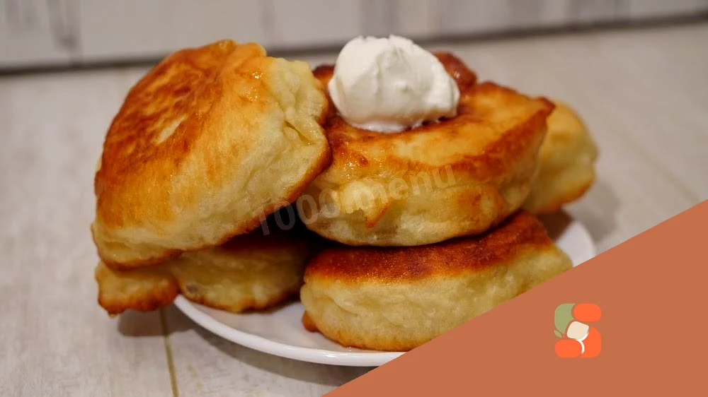 : Оладки перекладаємо на тарілку і подаємо до столу зі сметаною, можна і з варенням, медом, або згущеним молоком за вашим бажанням та смаком.