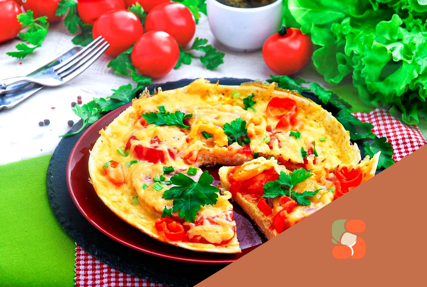 : Коли омлет знизу засмажиться, переверніть лаваш на інший бік.