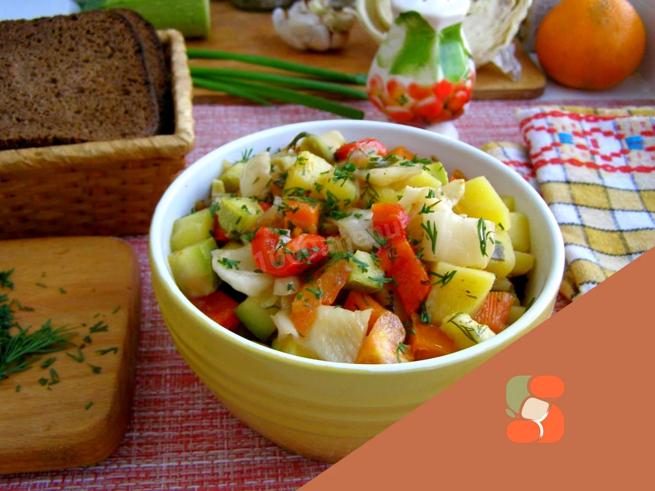 : Кабачок також наріжте середнім кубиком