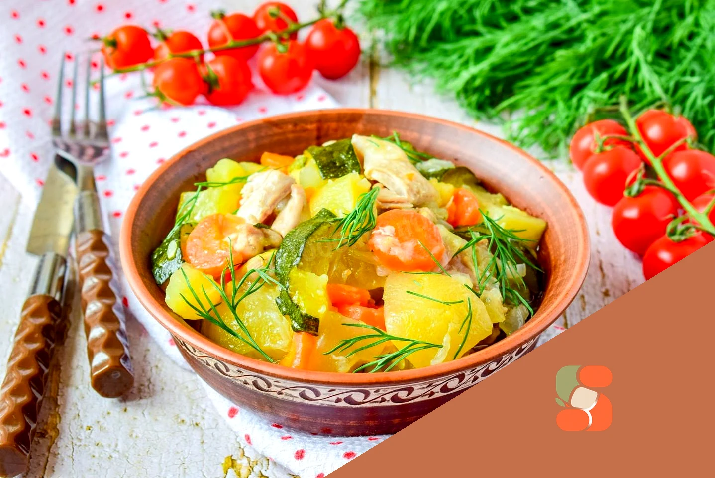 : Рагу з куркою у мультиварці готово Картопля стала м'якою. Із овочів з'явилося багато соку. Все перемішайте. Розкладіть тарілку і подавайте до столу. Приємного апетиту!