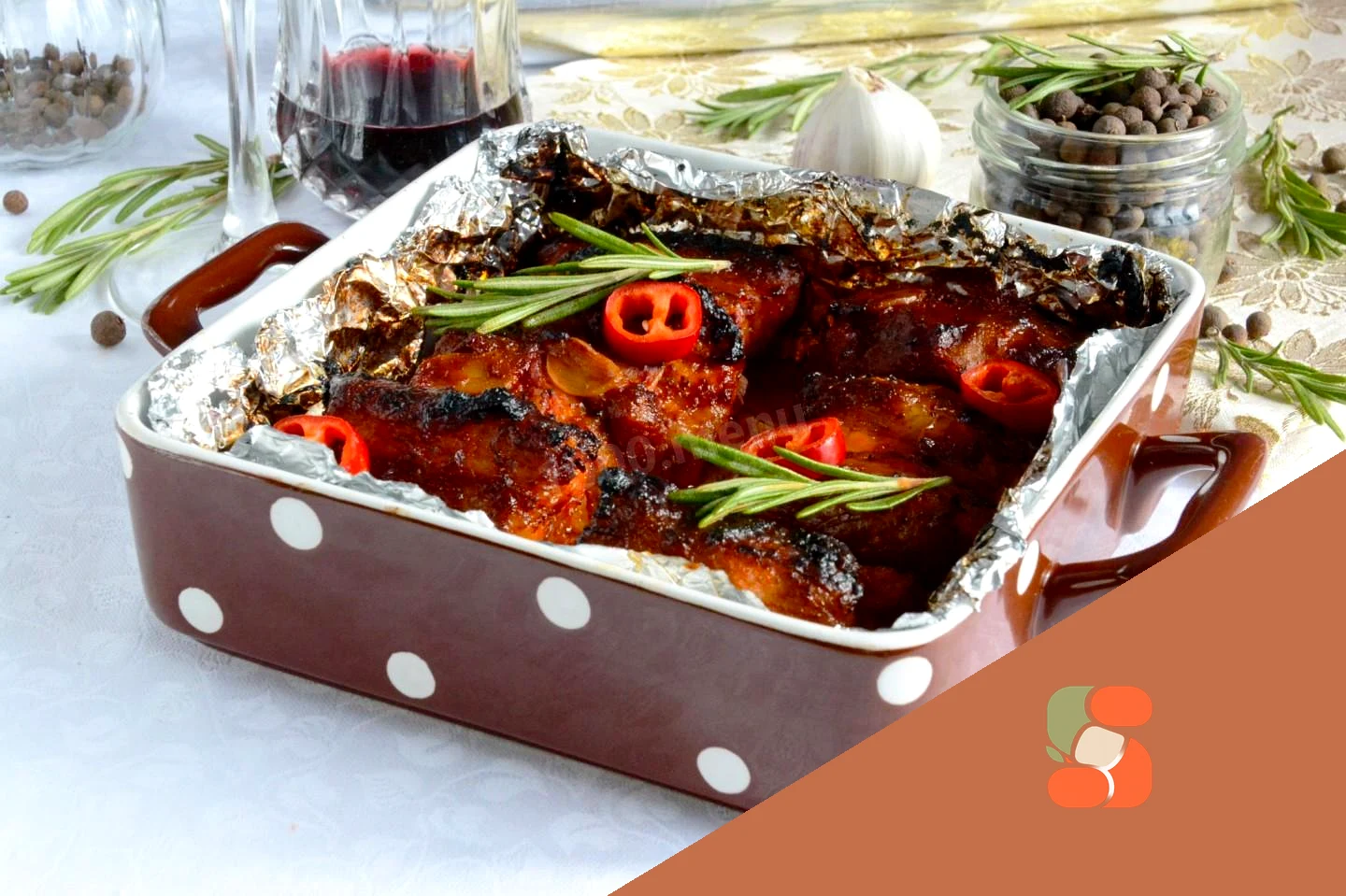 : Візьміть форму для запікання. Дно і боки форми застелите фольгою, залиште при цьому довгий край, що звисає, щоб накрити реберця зверху. Викладіть реберця у форму і накрийте фольгою, при цьому краї зафіксуйте по краю всієї форми.