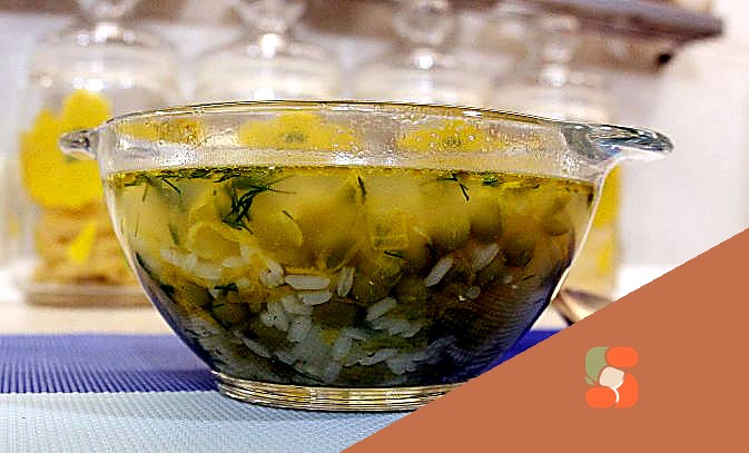 Ніжний білий рис розм'якшується в гарячому бульйоні, створюючи кремову основу супу, а яскраво-зелені горошини додають йому свіжості та солодкавого смаку. Це класичне комфортне блюдо з лагідним, ніжни…