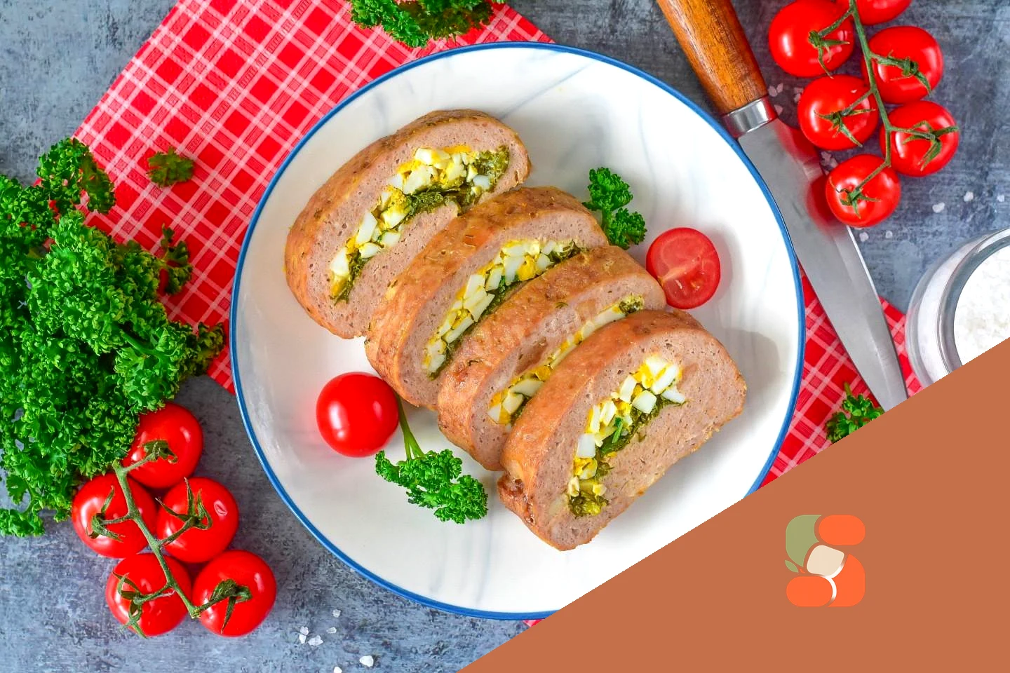 : Запечений рулет з фаршу в духовці з начинкою наріжте скибочками та подавайте до столу. Приємного апетиту!