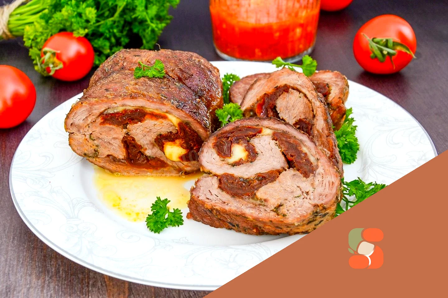 : Перекладіть рулет у форму для запікання і поставте в розігріту до 190 ° С духовку на 30-35 хвилин. Час та температура вказані приблизно, орієнтуйтесь на особливості роботи вашої техніки. Про духовки читайте у статті наприкінці цього рецепту. Запечений рулет із яловичини з начинкою дістаньте з печі, наріжте тонкими скибочками та подавайте до столу. Приємного апетиту!