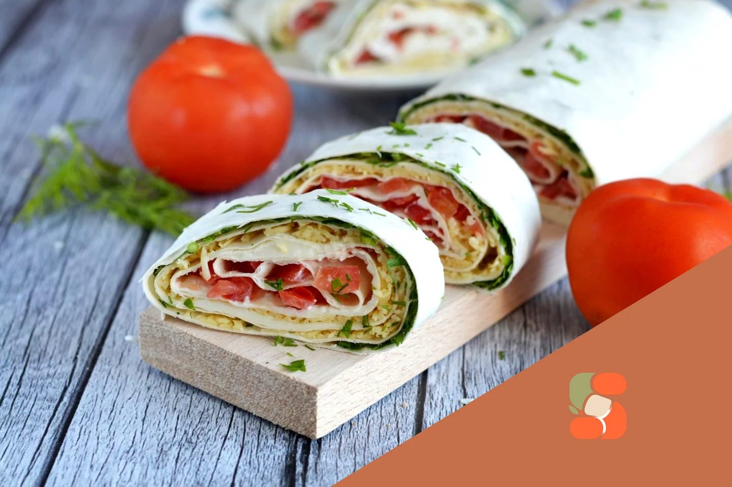 : Поверніть лаваш щільним рулетом, починаючи від боку з помідорами, щоб усі томати залишилися в центрі рулету. У такому разі помідори не зможуть розмочити весь лаваш, тільки якщо саму серединку.