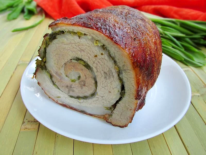 Рулет зі свинини з черемшею та кропом