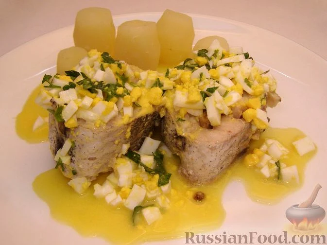 Подавати рибу по-польськи під яєчно-олійним соусом. Польський соус можна подати окремо, але він має бути теплим. Гарнір до риби - відварена картопля.