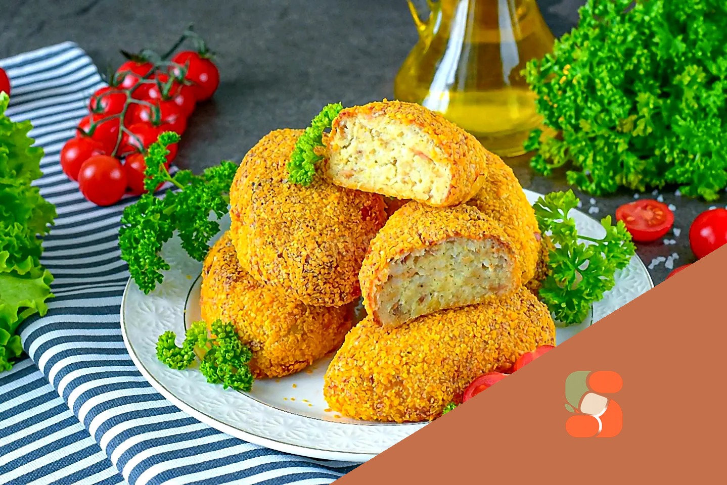 Як подати рибні котлети до столу? Рибні котлети, приготовлені в аерогрилі, перекладіть на тарілку, прикрасьте свіжими овочами та зеленню та подавайте до столу. Приємного апетиту!