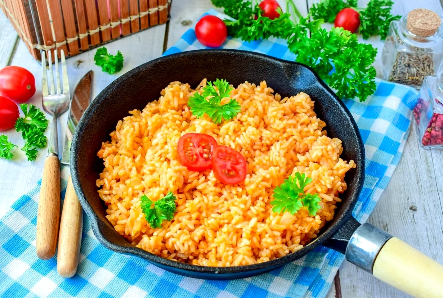 Рис в томатном соусе на сковороде