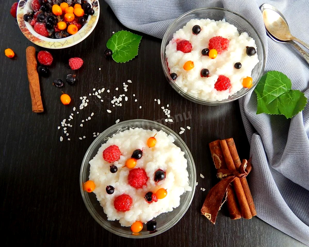 : Рисовая каша на кокосовом молоке готова. При желании подавайте кашу со свежими ягодами, кусочками свежих фруктов или джемом. Приятного аппетита!