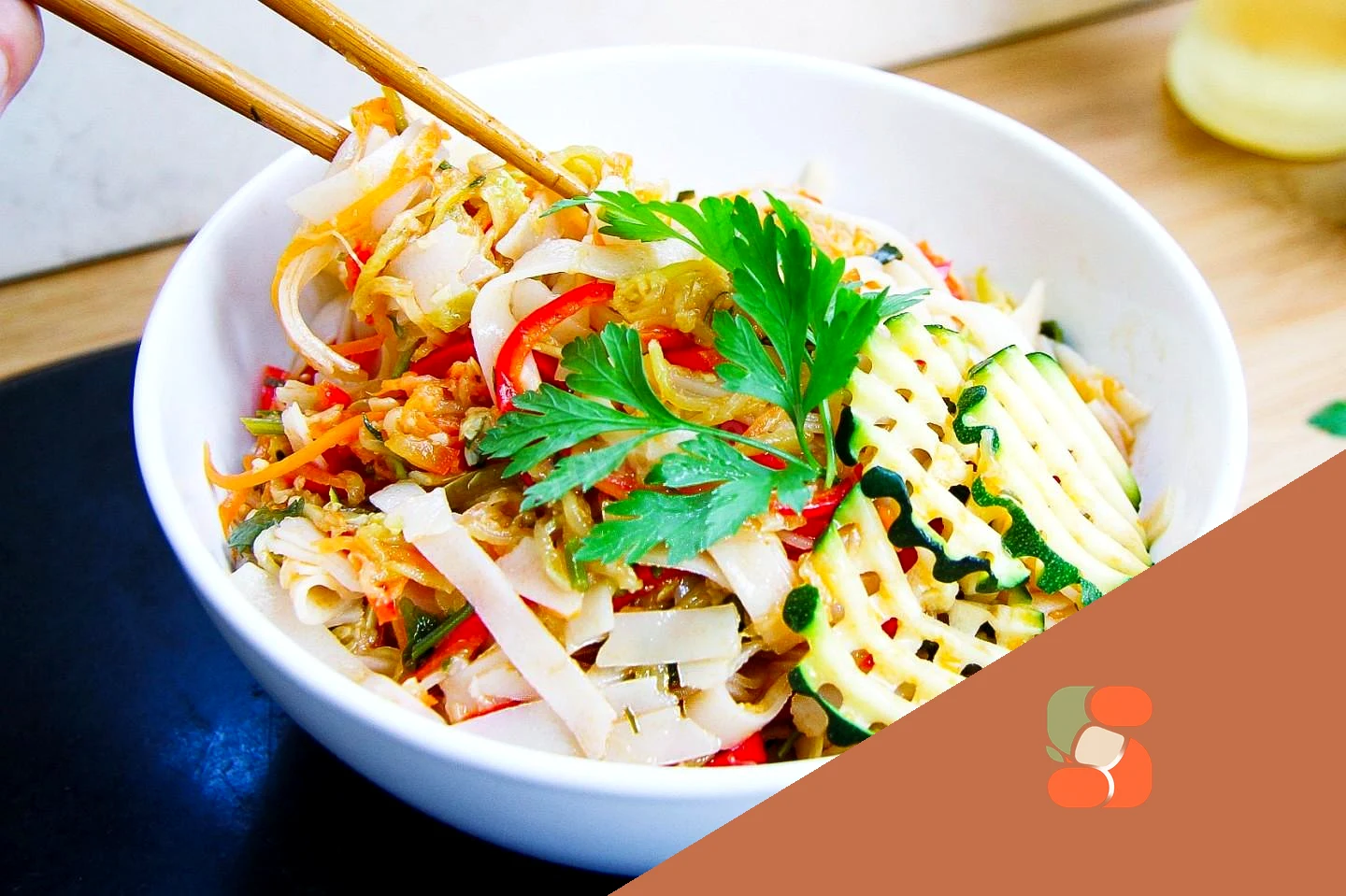 : Як зробити рисову локшину з овочами? Підготуйте продукти. Рисову локшину потрібно довести до напівготовності. Орієнтуйтесь на інструкцію, вказану на упаковці вашої локшини. Мені достатньо було залити локшину окропом і відставити наполягати на 20-25 хвилин.