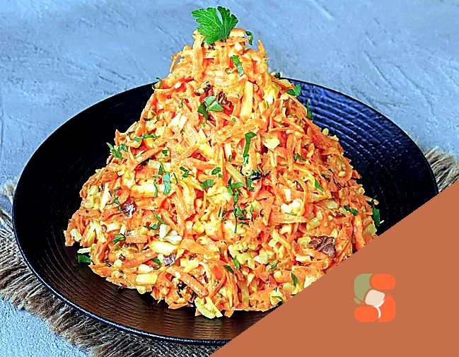 # Салат з моркаву та сиром Яскравий, хрустких морквяний салат з солодкавим присмаком горіхів і гострою нотою часнику — ідеальна закуска для будь-якого столу. Тонкі смужки золотистої моркви контрастую…