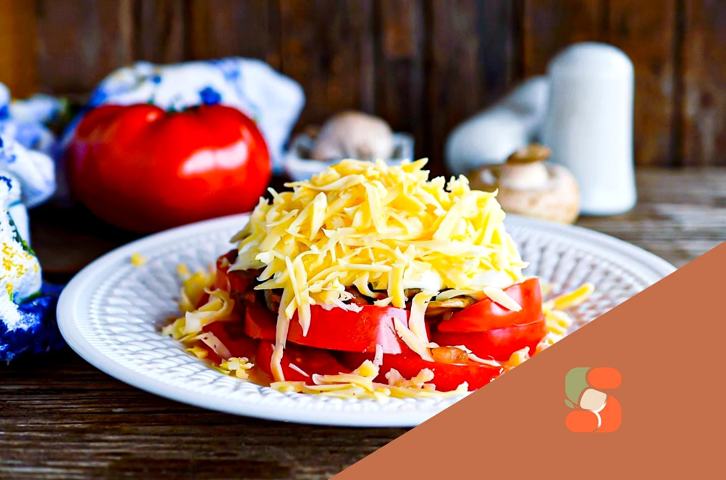 : Завершальний шар - тертий сир Підійде будь-який сорт: класичний твердий (пармезан), напівтвердий (чеддер, гауда) або з пліснявою (дор блю, камамбер).
