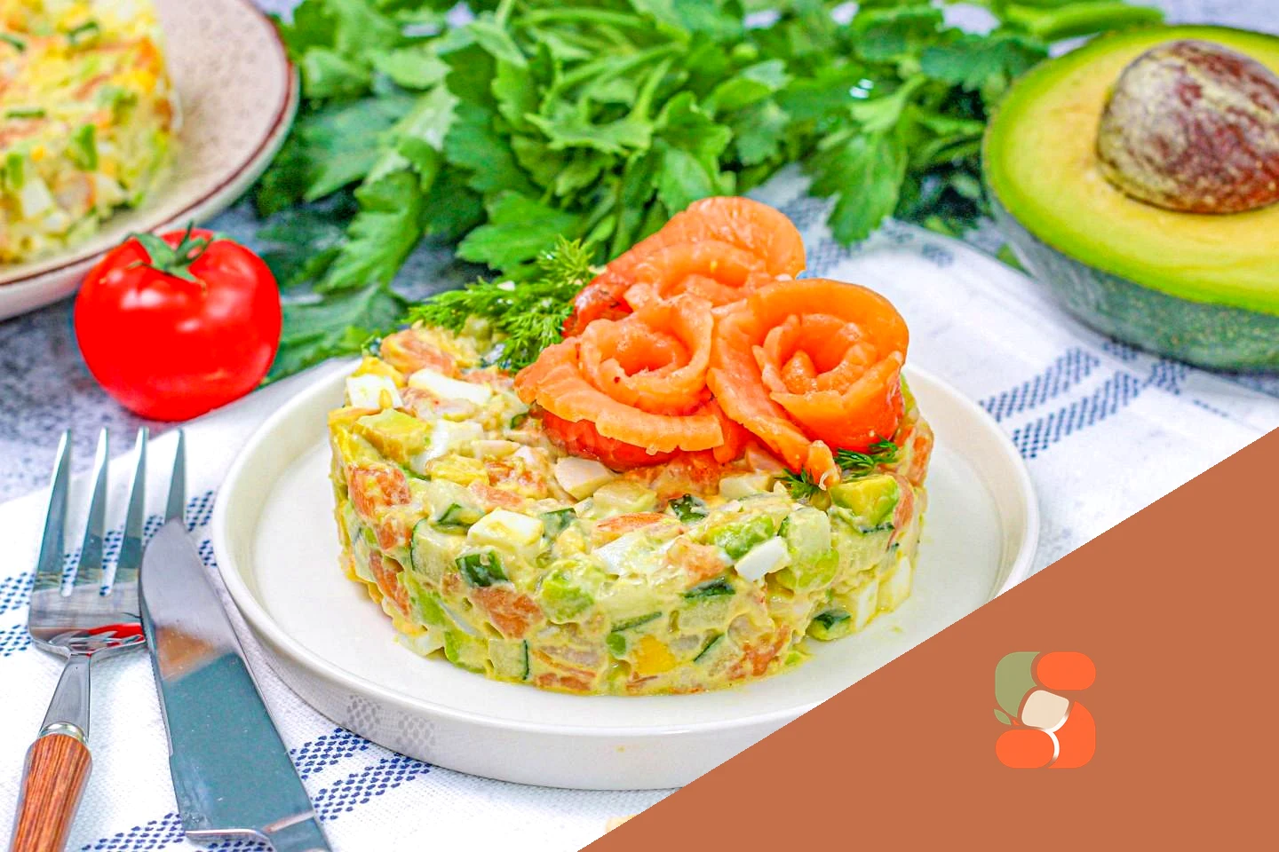 Як подати салат до столу? Салат з авокадо сьомгою та креветками можна подати до столу в салатнику, але для більш ефектної подачі викладіть салат порційно на тарілки за допомогою кулінарного кільця. Зверху я прикрасила салат трояндочками з риби. Приємного апетиту!