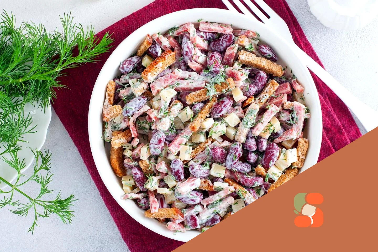 Салат з квасолею сухариками та ковбасою