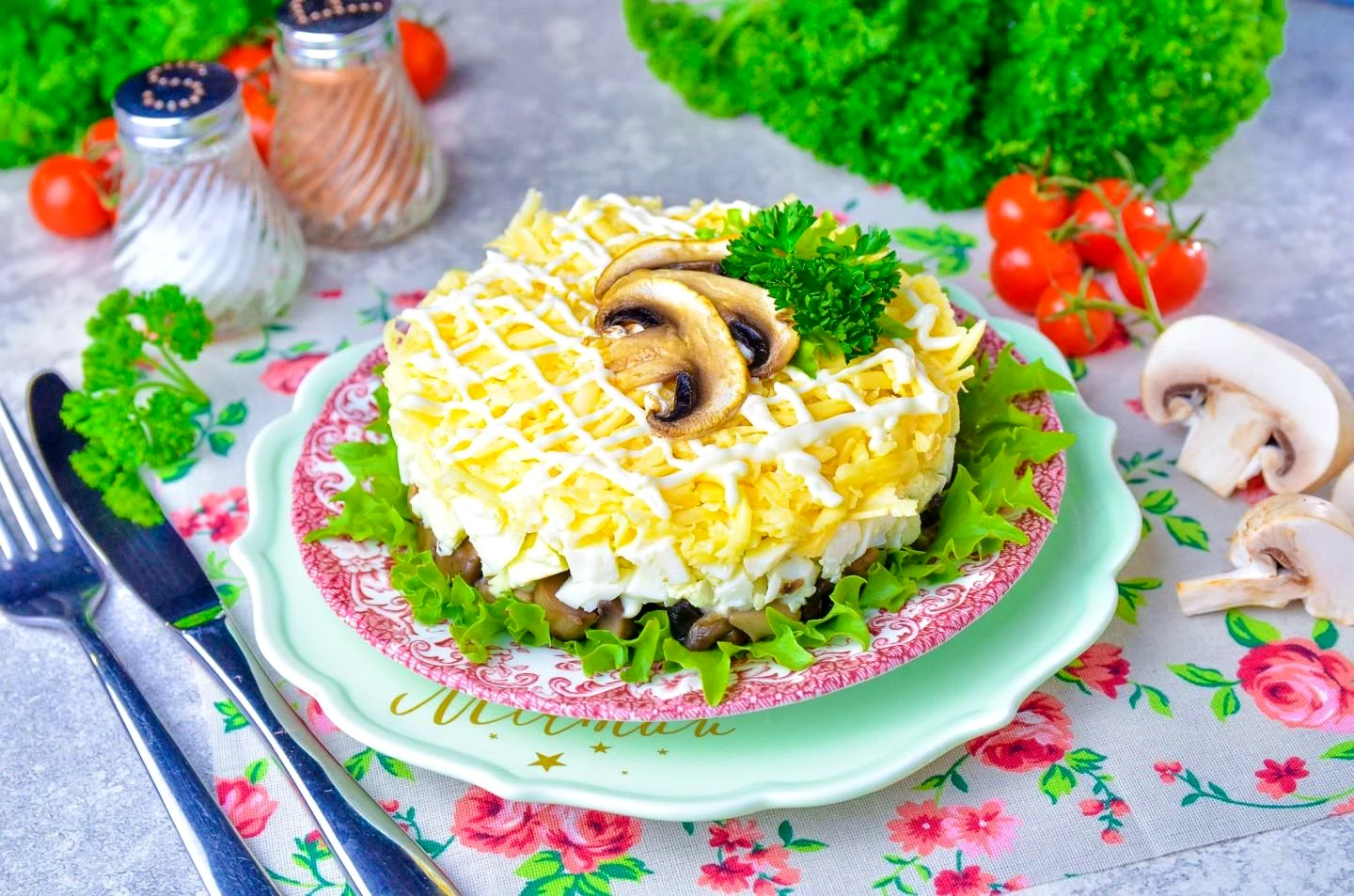 Салат з грибами яйцями та сиром