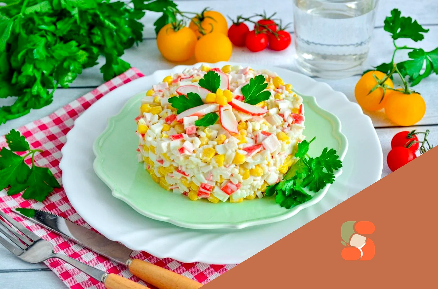 : Як зробити салат з крабовими паличками, рисом та яйцем? Підготуйте продукти. Рис та яйця заздалегідь відваріть та остудіть. Рис раджу для салату взяти пропарений, він не злипнеться під час та після варіння. Банку з кукурудзою відкрийте та злийте рідину. Палички, якщо вони заморожені, розморозьте.