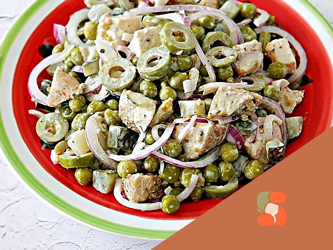 Салат з куркою, оливками та зеленим горошком