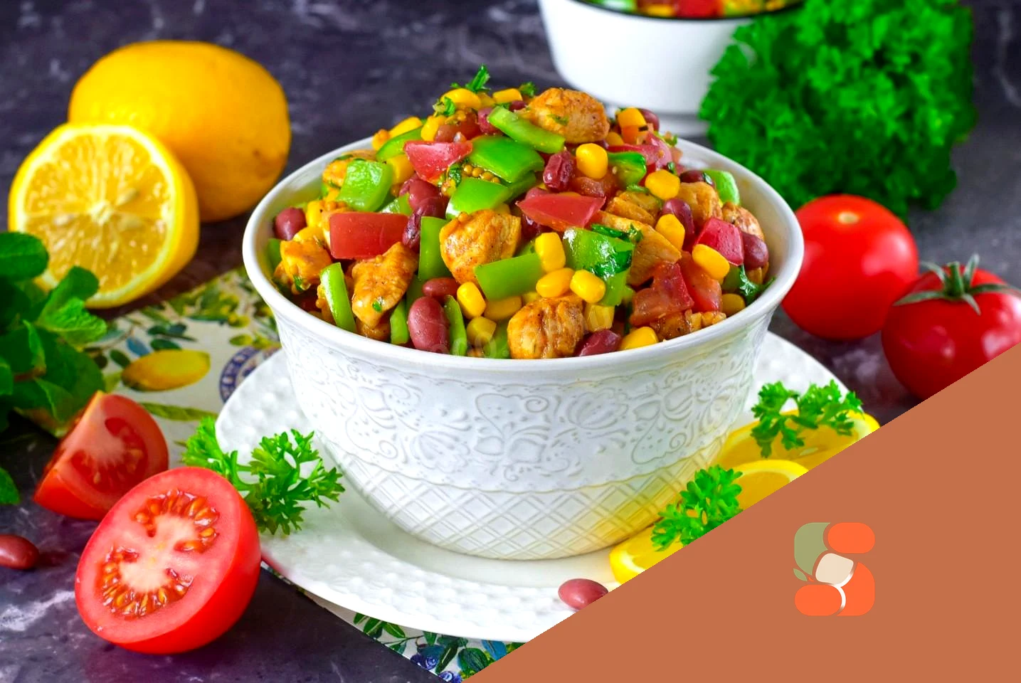 Салат з куркою квасолею та кукурудзою