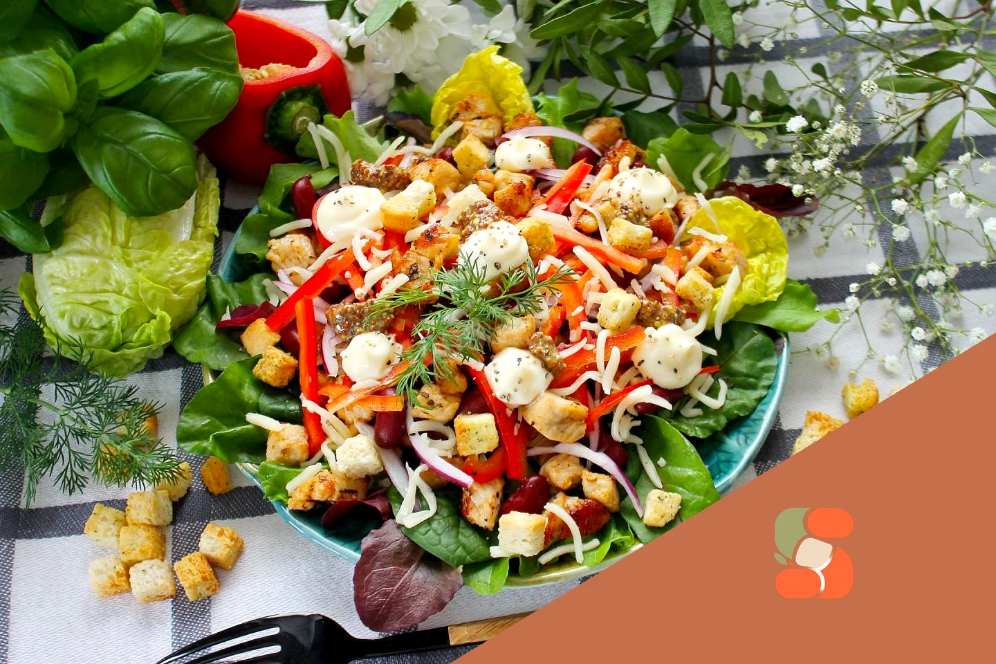 Салат з куркою квасолею та сухариками