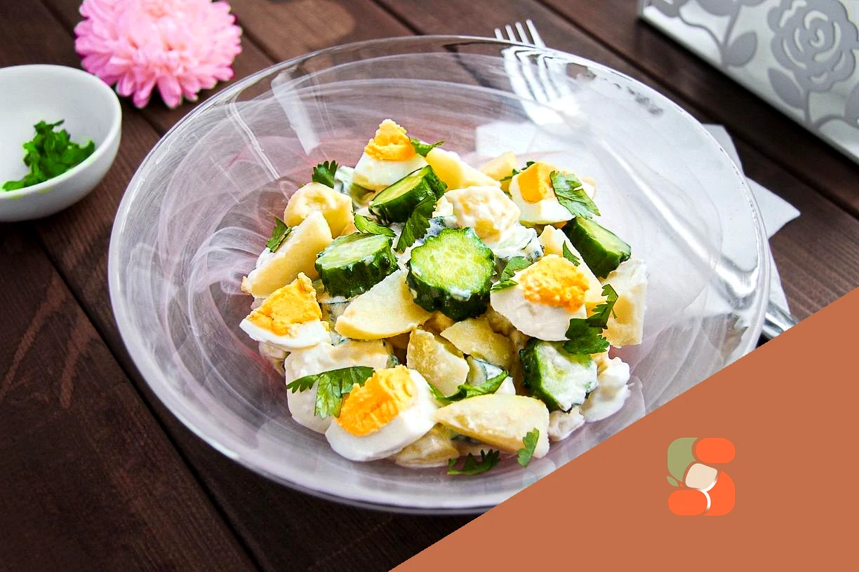 : Як зробити салат із солоними огірками, яйцями та картоплею? Підготуйте продукти. Яйця та картопля помийте. Картопля додатково потріть щіткою. Відправте ці два інгредієнти в ту саму каструлю, адже вони можуть чудово варитися разом. Залийте їх водою та поставте на невеликий вогонь.