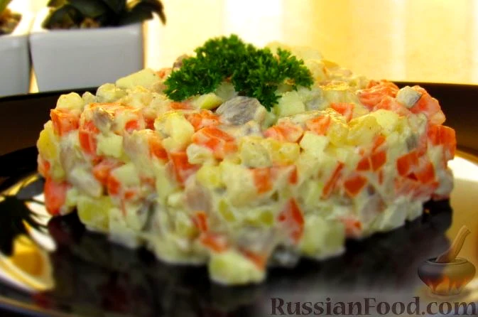 Салат "Зимовий" з оселедцем та яблуком готовий. Смачного!