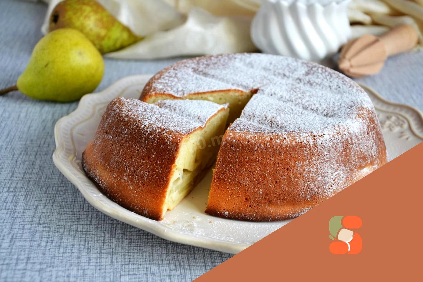 : У змащену вершковим маслом форму для запікання (діаметром приблизно 16-18 см) вилийте половину тесту. Зверху розподіліть скибочки груш і зверху залийте тестом, що залишився.