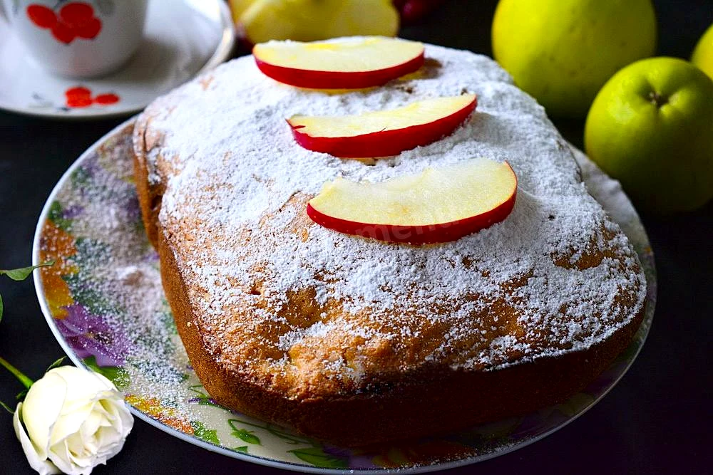 Інгредієнти−6 порцій+Продукти (6 порцій)Яблоки120 грСахар100 грКуриные яйца3 шт.Пшеничная мука150 грВанильный сахар5 гр