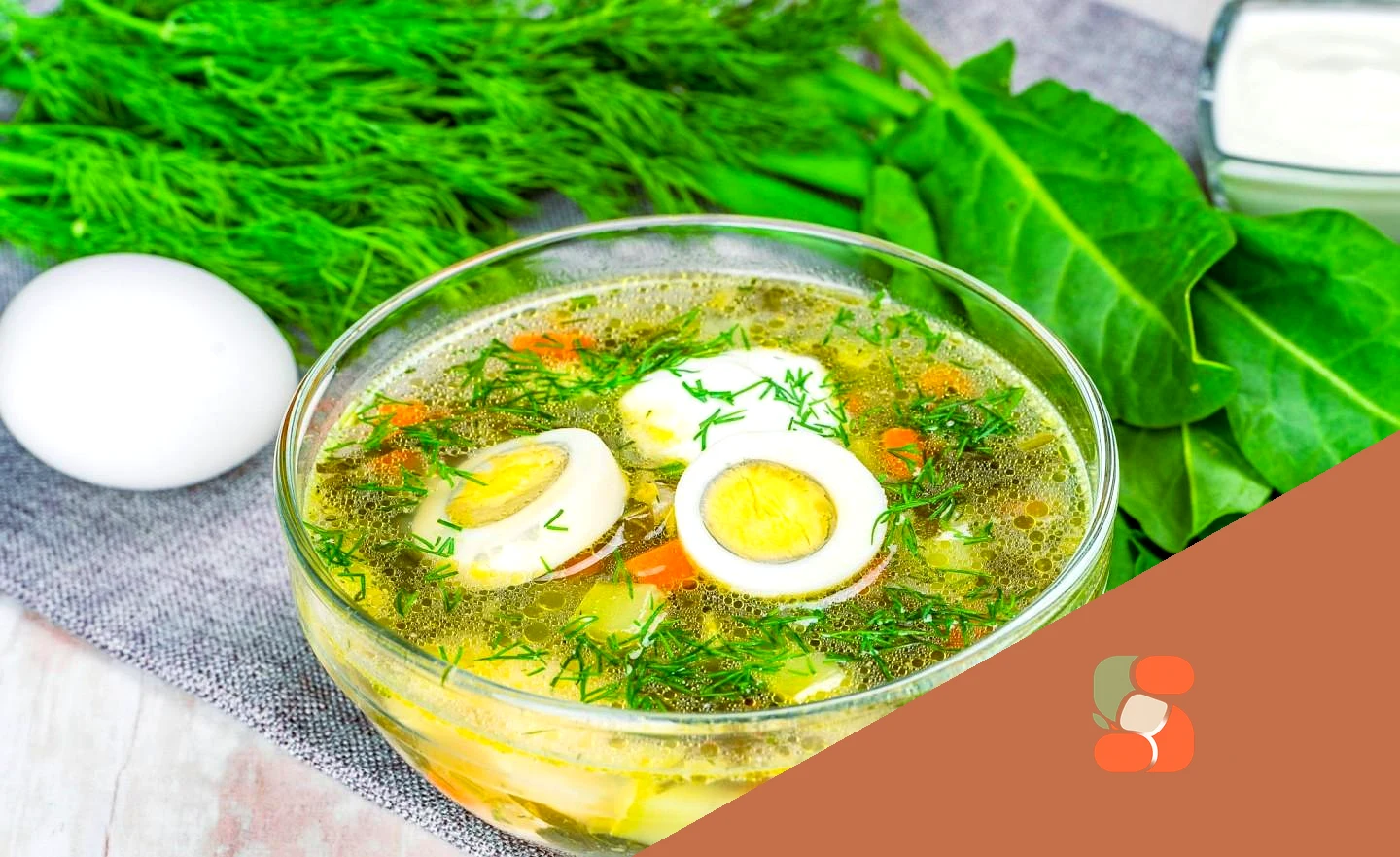 : Розлийте щавлевий суп з куркою по порційним тарілкам, додайте попередньо зварені круто і нарізані курячі яйця, за смаком сметану і подавайте до столу.