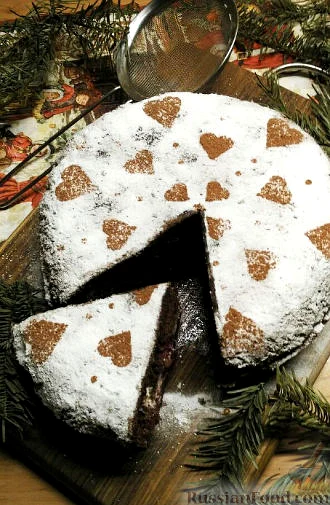 Готовий торт посипаємо цукровою пудрою та какао, використовуючи трафарет (за бажанням).