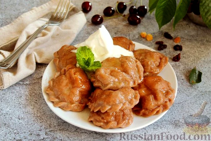 Шоколадні вареники з вишнею та родзинками