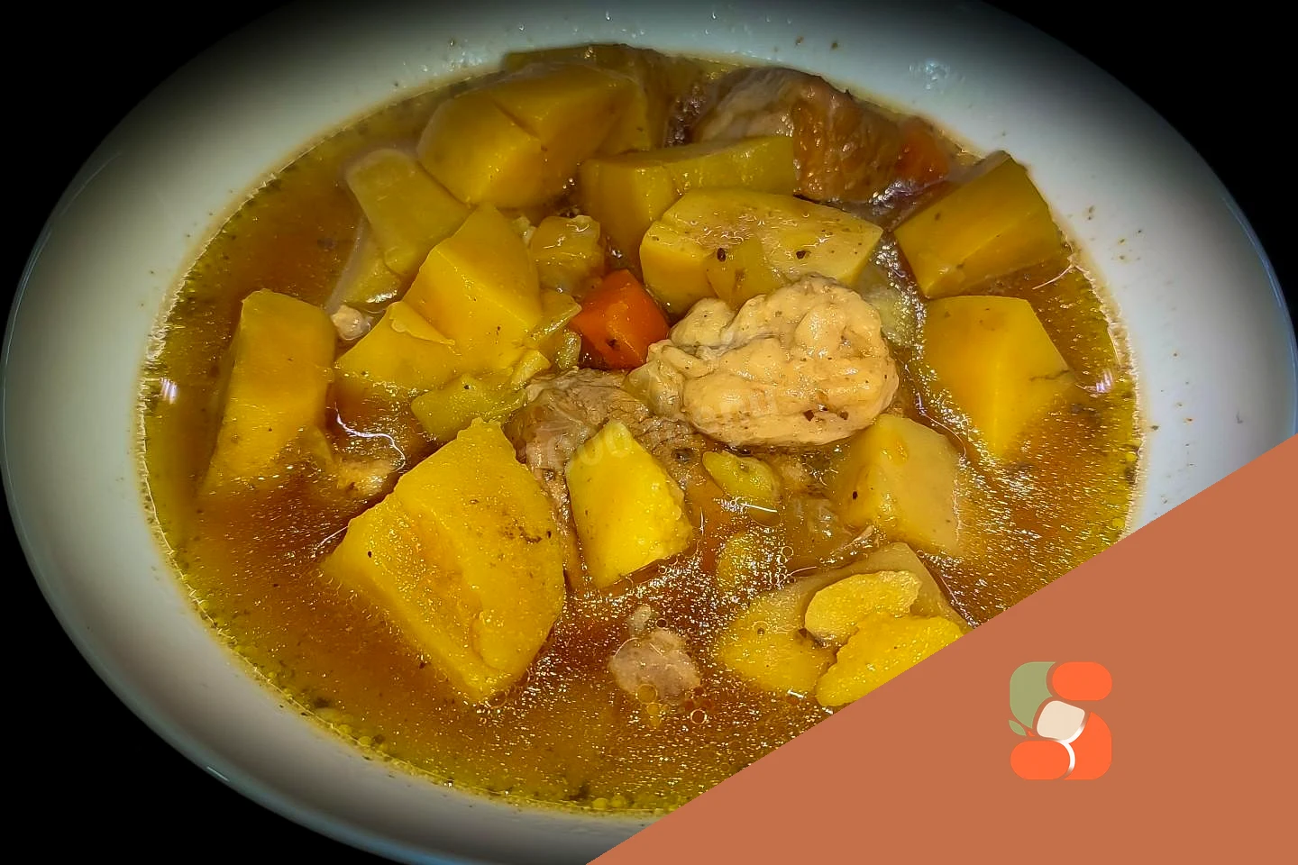 : Підготувати всі інгредієнти згідно зі списком. М'ясо промити та обсушити кухонним рушником. Картоплю нарізати великими шматочками (можна на 4 частини просто розрізати), цибулю очистити і порізати на півкільця. Моркву очистити, якщо не велика, то можна нарізати кільцями, якщо велика, то на півкільця чи навіть четвертинки, але дрібнити з усіма продуктами не треба! Сухі спеції подрібнити у кавомолці. М'ясо нарізати порційно приблизно 3х3 сантиметри.